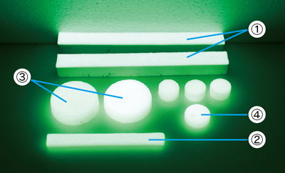 ガラス材、蓄光材、セラミック材
