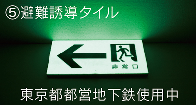 ⑤避難誘導タイル(上層が蓄光材+下層がセラミック材)